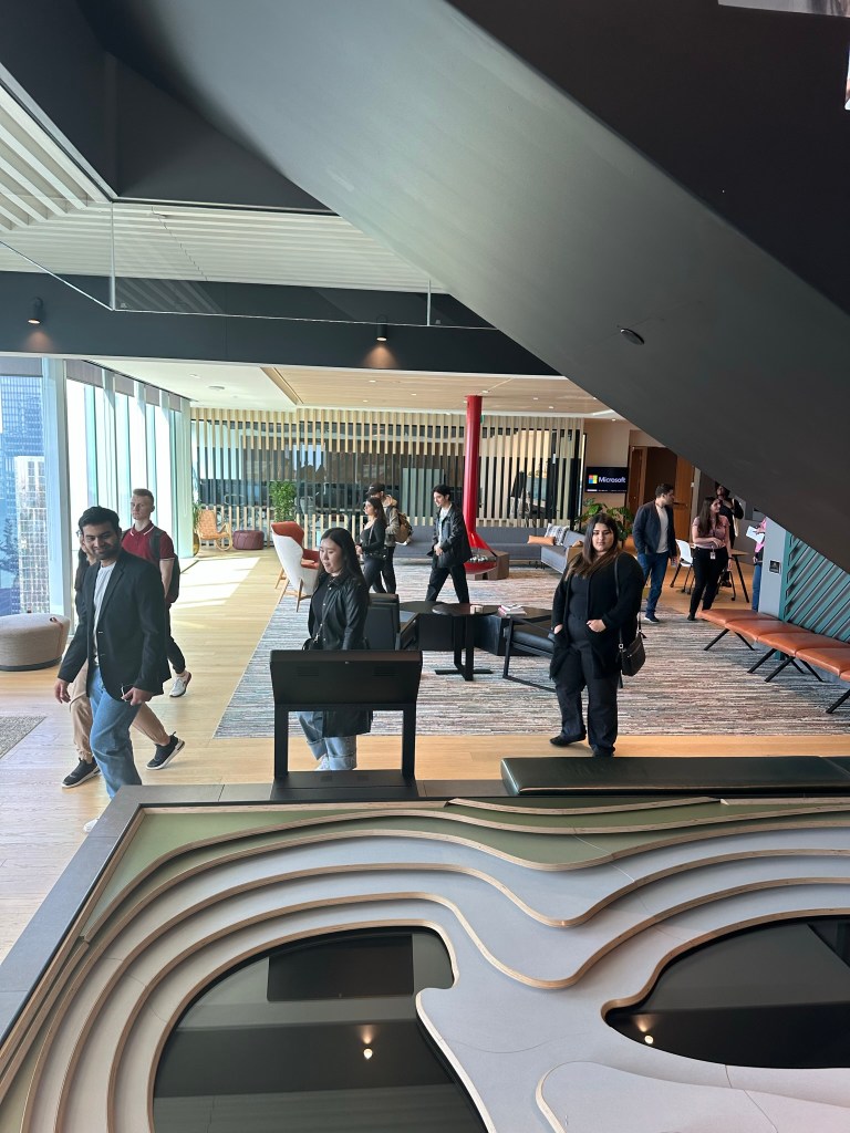 A group of eager students from the Digital Business Management BComm program & Marketing BComm program spent the afternoon of Friday May 12, 2023 at Microsoft Canada’s head office downtown Toronto, along with their Program Coordinators Hanadi Alnawab and Emily Gaszynski.