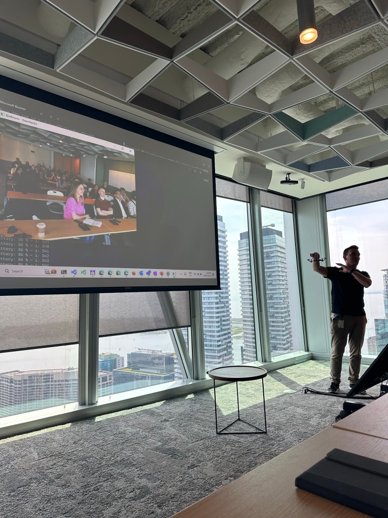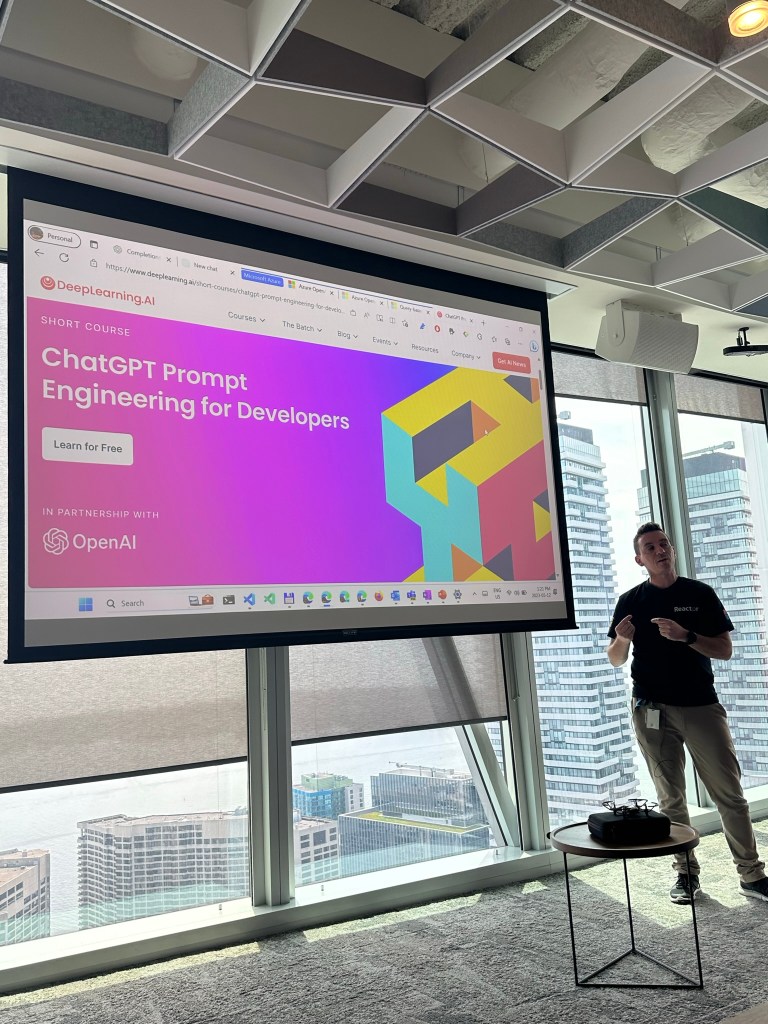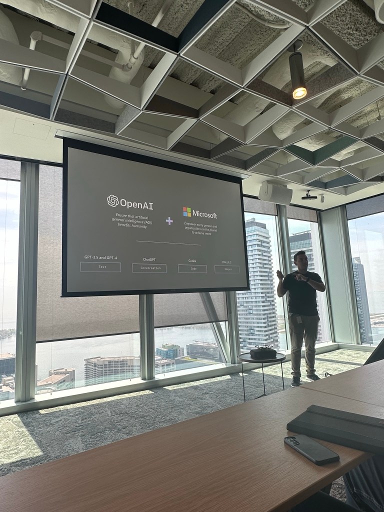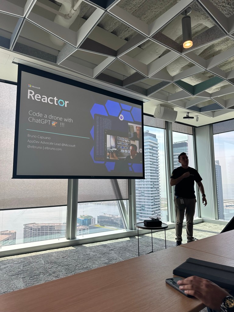 We started our visit with a presentation and demo of ChatGPT by Bruno Capuano, Senior Cloud Advocate @ Microsoft, who discussed prompt engineering and showed us a demo on using ChatGPT to fly a drone! The session included Q&A and a rich conversation about the future of AI in education and the industry, and shared the following resources: