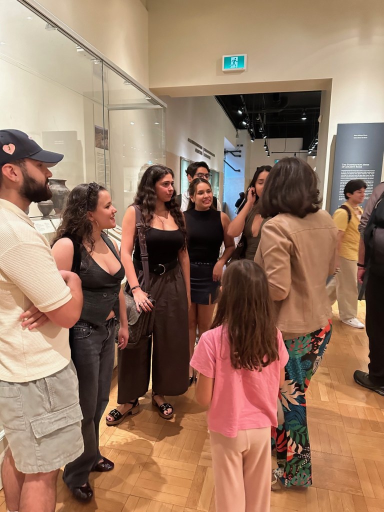 On September 17, 2024, students from the FASH 3000 20th Century Fashion History and BUS 3003 e-Business Information Systems & Technologies courses met their professors, Francesca D’Angelo and Hanadi Alnawab, for an inspiring evening at the Royal Ontario Museum. The focus of the night was an in-depth exploration of UX design and museum curation.